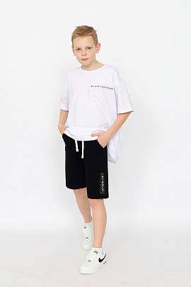 Шорты с лампасами. Пояс притачной, со вставленной внутрь резинкой. В пояс вставлен шнур.